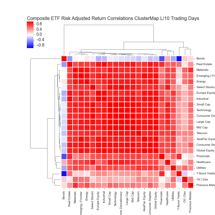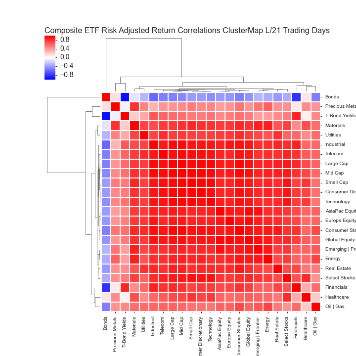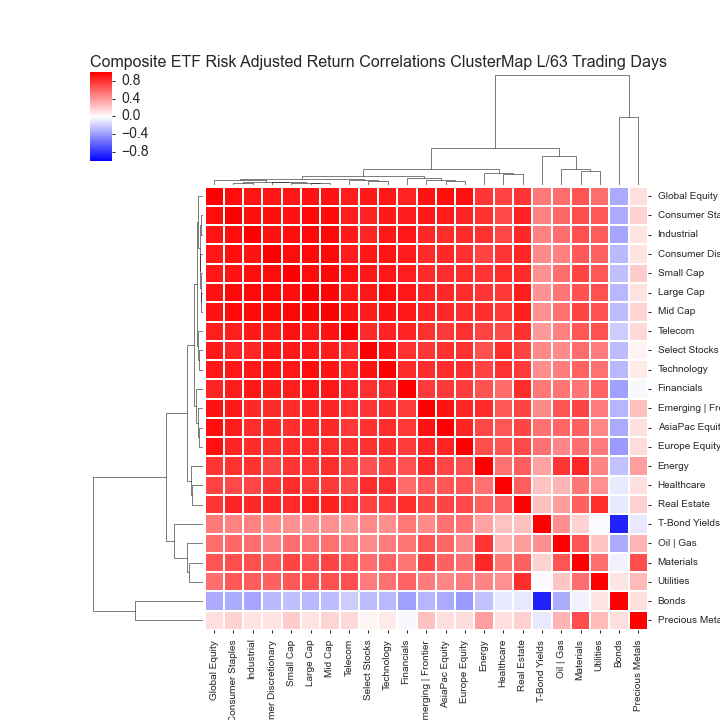 COMPOSITE ETF RISK-ADJUSTED RETURN CORRELATIONS HEATMAP CLUSTERPLOTS