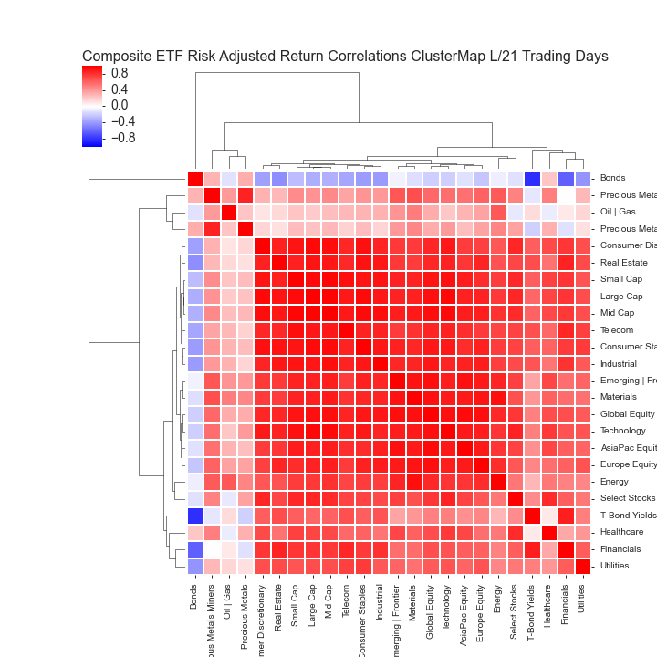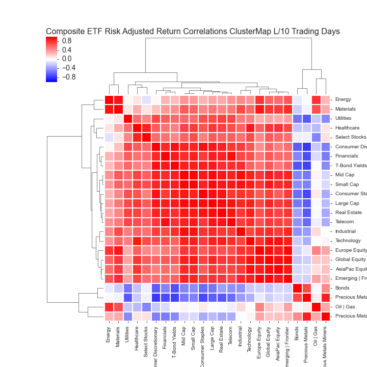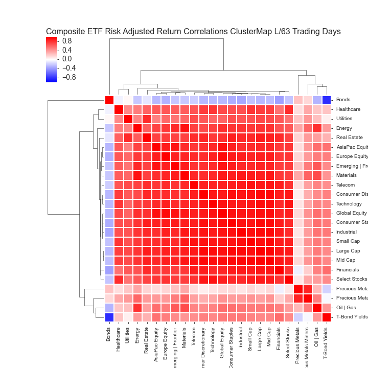 COMPOSITE ETF RISK-ADJUSTED RETURN CORRELATIONS HEATMAP CLUSTERPLOTS