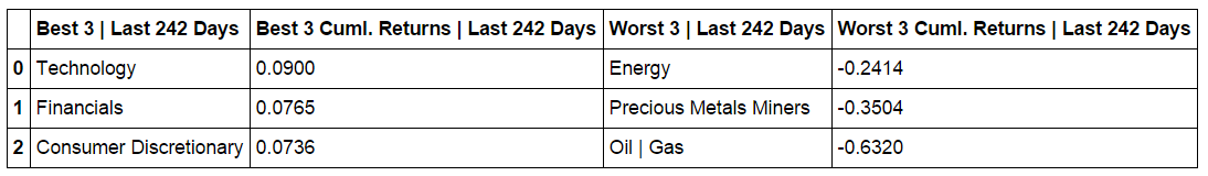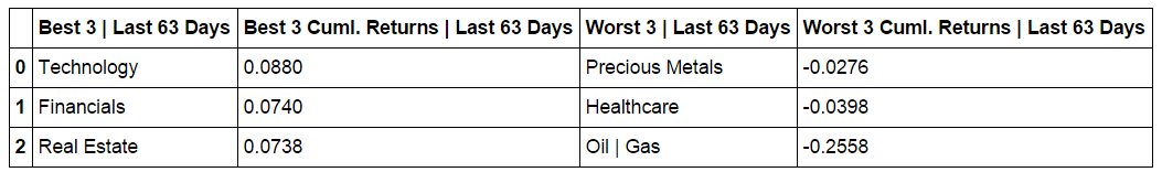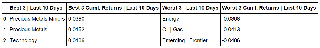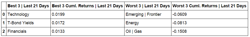 Composite ETF Cumulative Returns Momentum Bar plot and associated Tables