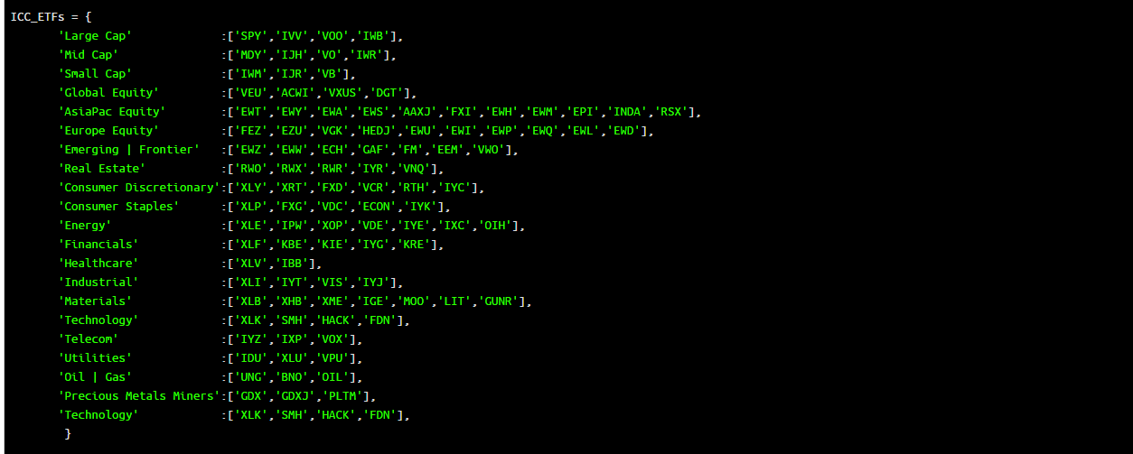 I use the ICC model as a relative value measure to identify analyst/institutional expectations and sentiment between different market sectors at a point in time.