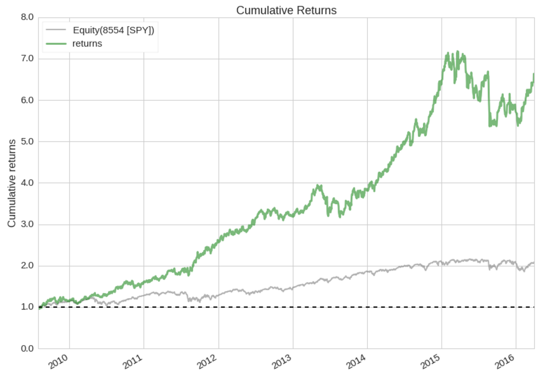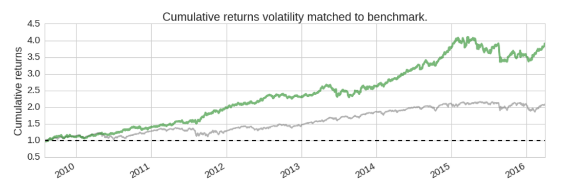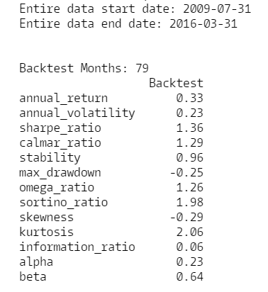 Below I document the performance of the strategy using the risk-parity implementation. As you will see the performance is comparable.