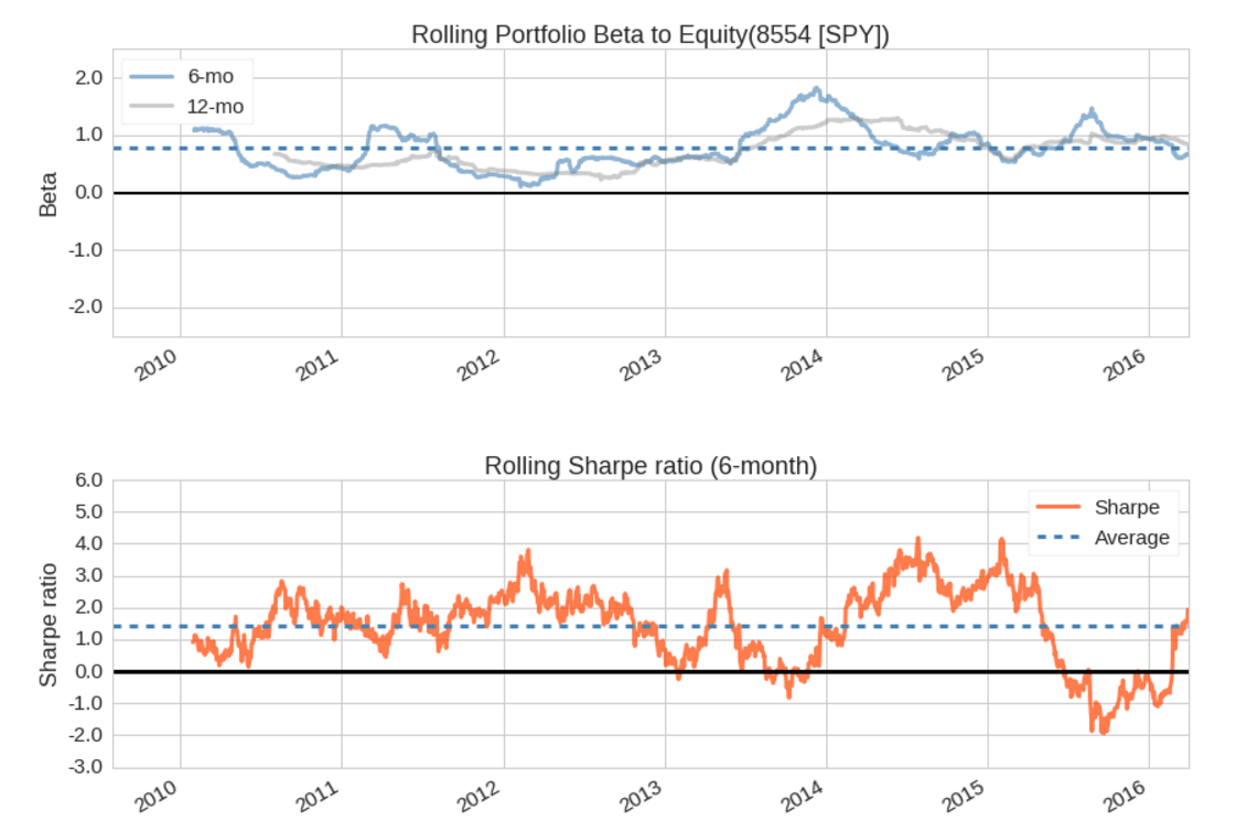 - Both strategies suffered negative rolling Sharpe ratios in 2015 however the inverse risk-parity approach recovered much quicker.