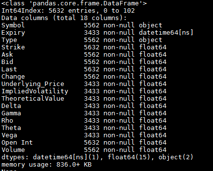 Here are the functions to first create the basic options dataframes.