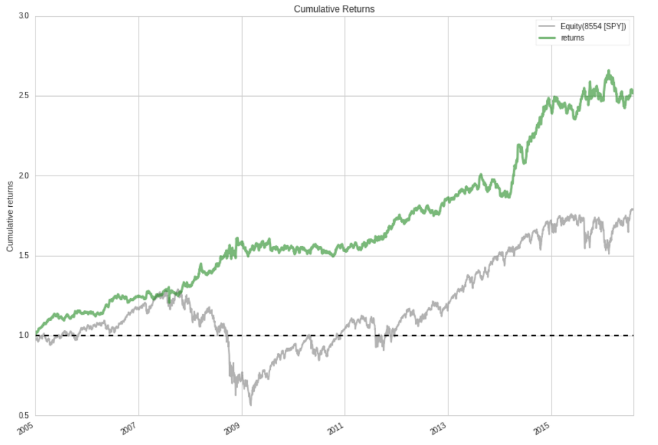 - My strategy is not an EXACT replication of the S&P alpha factor strategy. I did not ensure that the relevant fundamental data points encompassed the same lookback period. Instead, I simply used the default point-in-time data provided by Morningstar via the Quantopian platform.