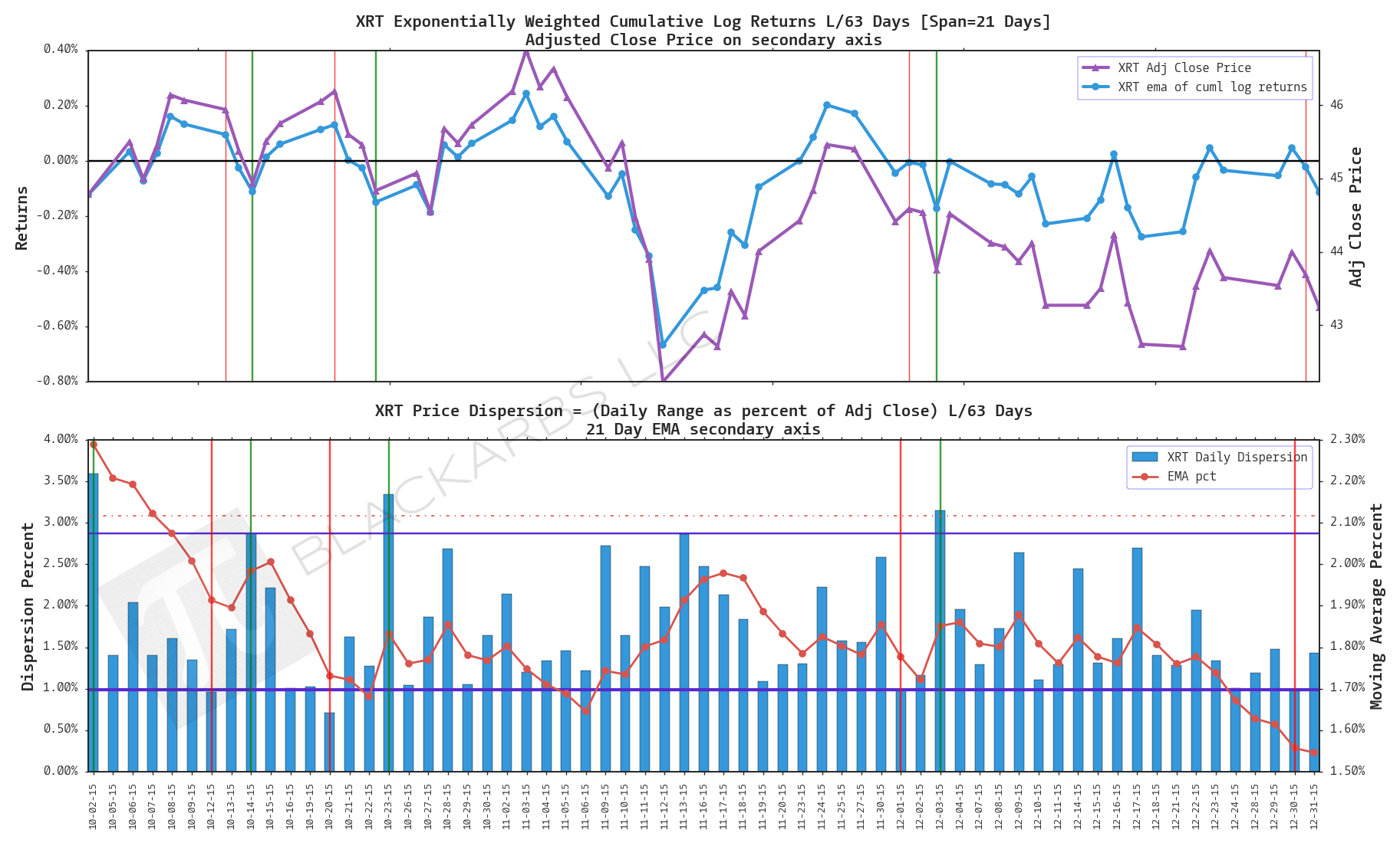I then used the paper's SKEW measure to sort the equities into deciles. I want to track the performance of some of the highlighted ETF's in the top and bottom deciles in real-time. Here are the resulting names for this week.