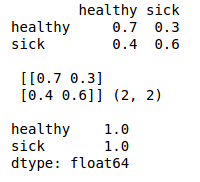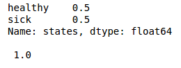 First we create our state space - healthy or sick. We assume they are equiprobable.