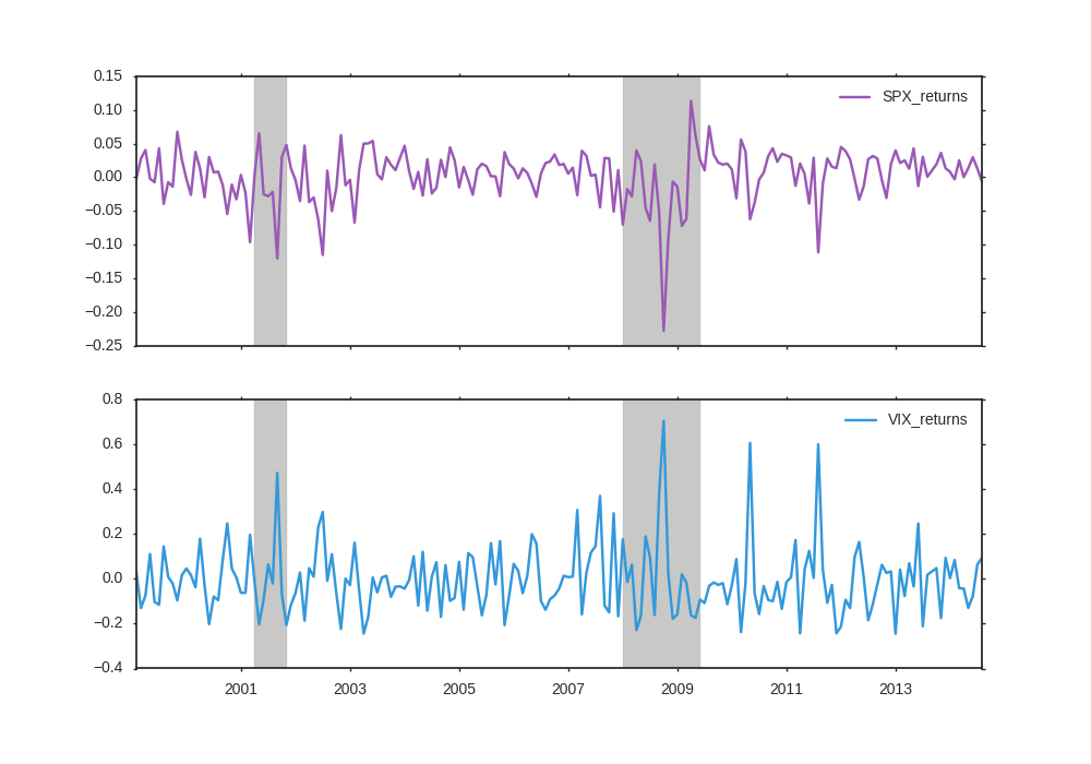 Now we can plot the default chart with recession shading. Let's take a look.