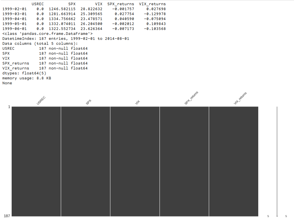 Get time series data from Yahoo finance and recession data from FRED.