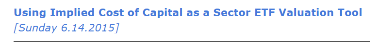 Check out the updated IPython Notebook where I take a look at changes and trends in ETF valuations using the Implied Cost of Capital model. To learn more about the model and the methodology used see here and here.