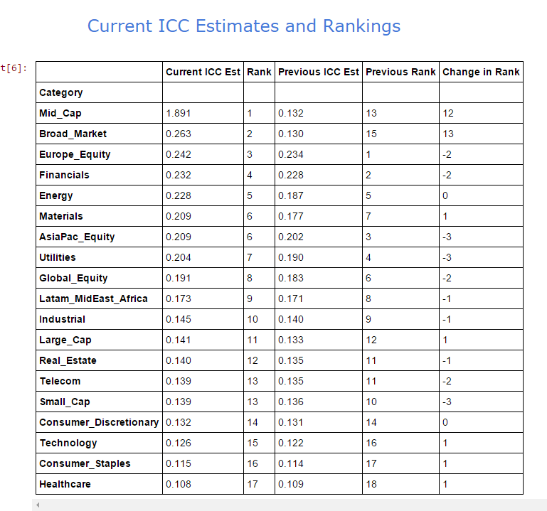 Check out the updated IPython notebook by following the link. In this update we see the interest rate sensitive sectors like Financials, Real Estate, Utilities may be offering a good tactical buying opportunity.