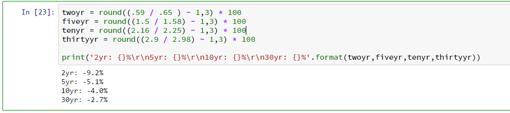 Examining the % change in yields of US treasuries from their Wednesday highs to Friday's close, it appears as if portfolio managers were moving to the shorter end of the curve as the 2, 5, 10 year all outperformed the 30 year.
