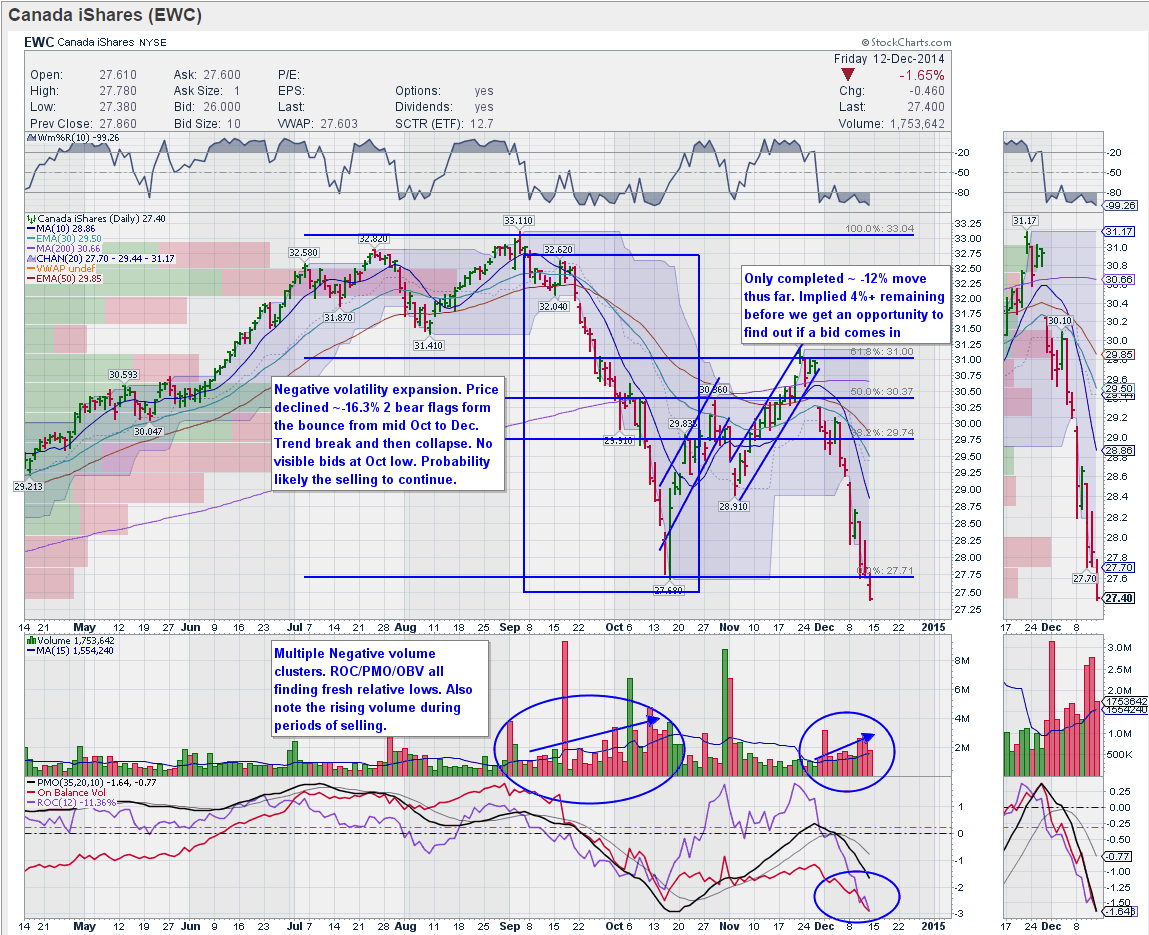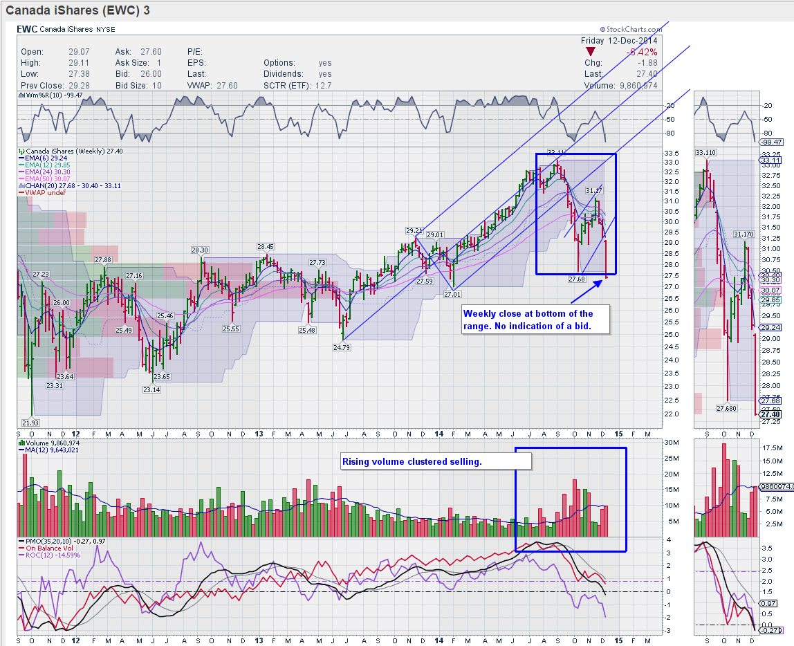 I'm actively looking for a trading opportunity here to the short side. Oil prices are weak, and the producers' currency is declining in relative value. Here are the setups I'm watching in charts.