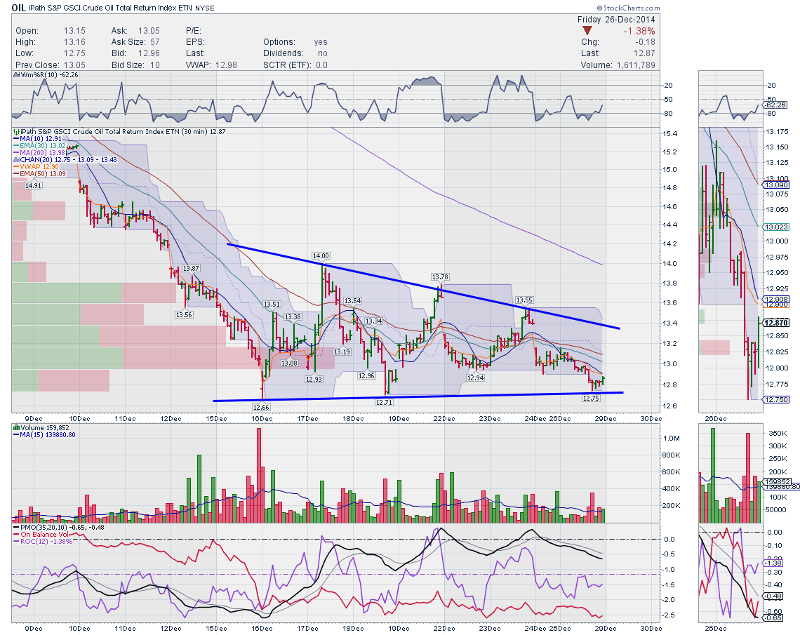( OIL ) price action appears to have moderated a little in terms of downside volatility; buyers and sellers that remained haven't shown conviction one way or the other yet.